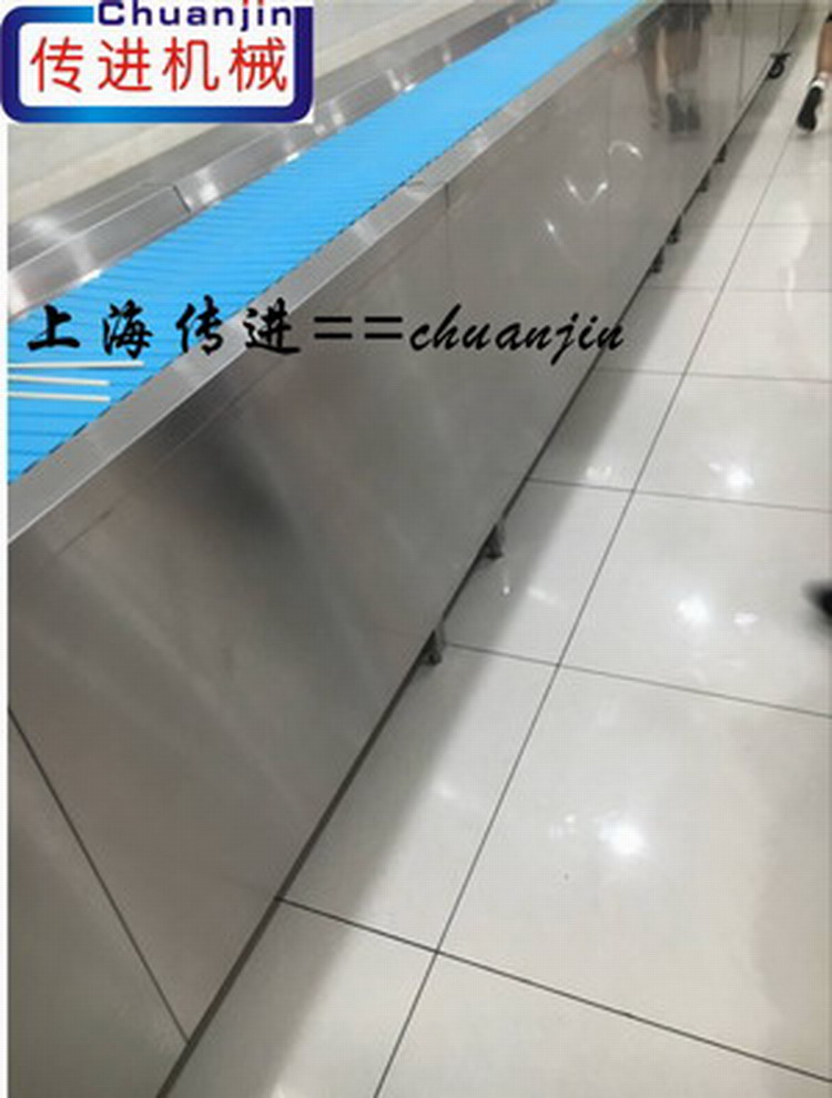 鏈板式(shì)餐具輸送機由不鏽鋼或塑鋼整體機架(jià)結構、食品級輸送帶、調速傳動機構組成。適用於食堂餐具回收(shōu)、快餐工廠、食品工廠餐具傳送等(děng)。【91污牌】鏈板式餐具輸送機(jī)是對傳統皮帶式(shì)輸送機的補充,它克服了皮帶機(jī)皮帶撕裂、刺破、腐(fǔ)蝕的缺點,為客戶提供的一種安全、快捷、易清洗、維護簡單的輸送方式。